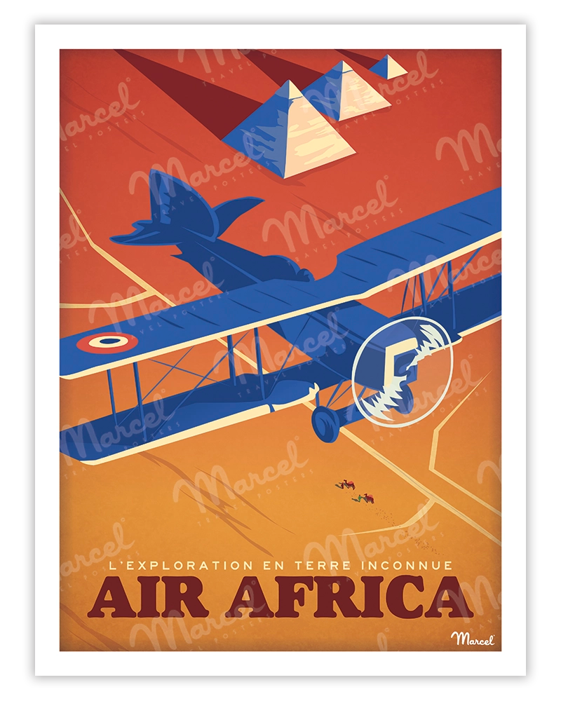 Between endless sand, pyramids and adventure, take part in the exploration and unknown land and be welcome aboard Air Africa, all in a retro style that will blend perfectly into your interior decoration.