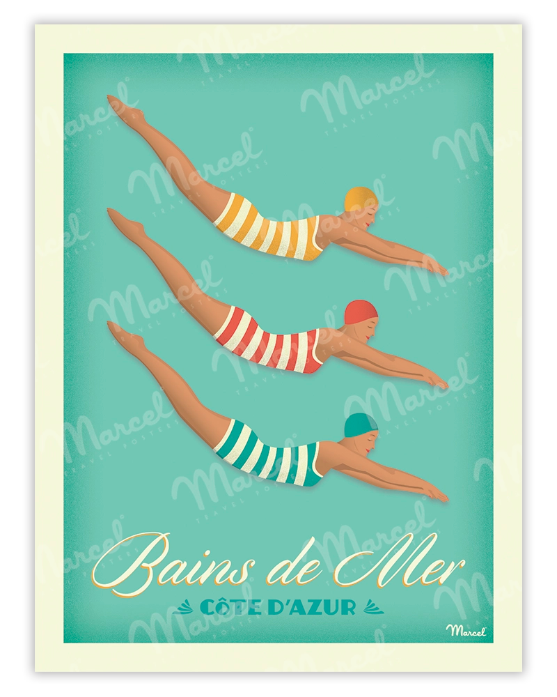 Marcel presents his original illustration SEA BATHING “Côte d'Azur”!