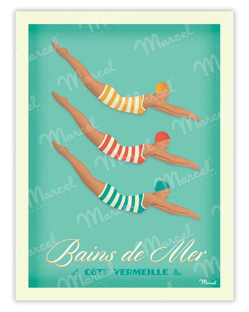 Marcel presents his original illustration SEA BATHING “Côte Vermeille”!