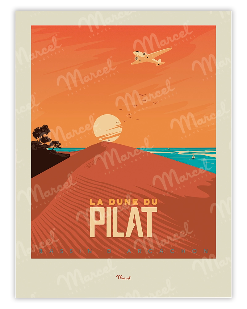 Mountain of sand, panorama over the Arcachon basin, forest in the background, escape by gaining height, all in a retro style that will blend perfectly into your interior decoration.