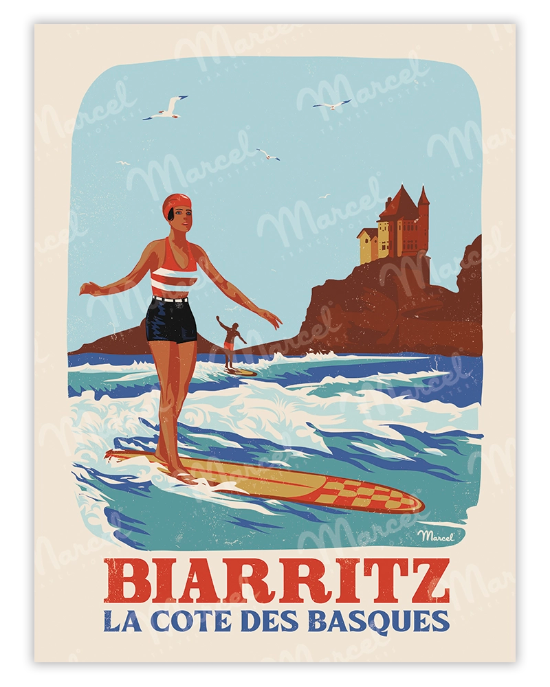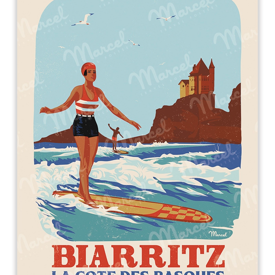 Marcel presents his original illustration BIARRITZ “Rétrosurf - Côte des Basques”!