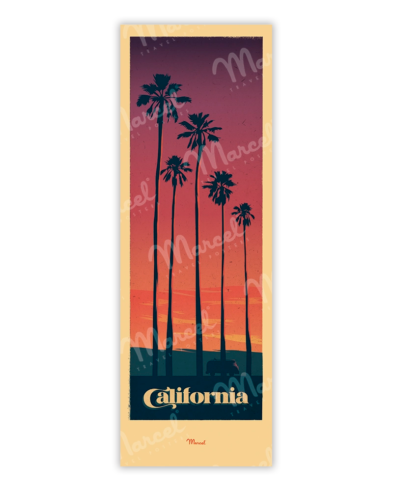 Between the Pacific Ocean beach and the Californian hills, find the best spot to admire this sunset, all in a retro style that will blend perfectly with your interior design.