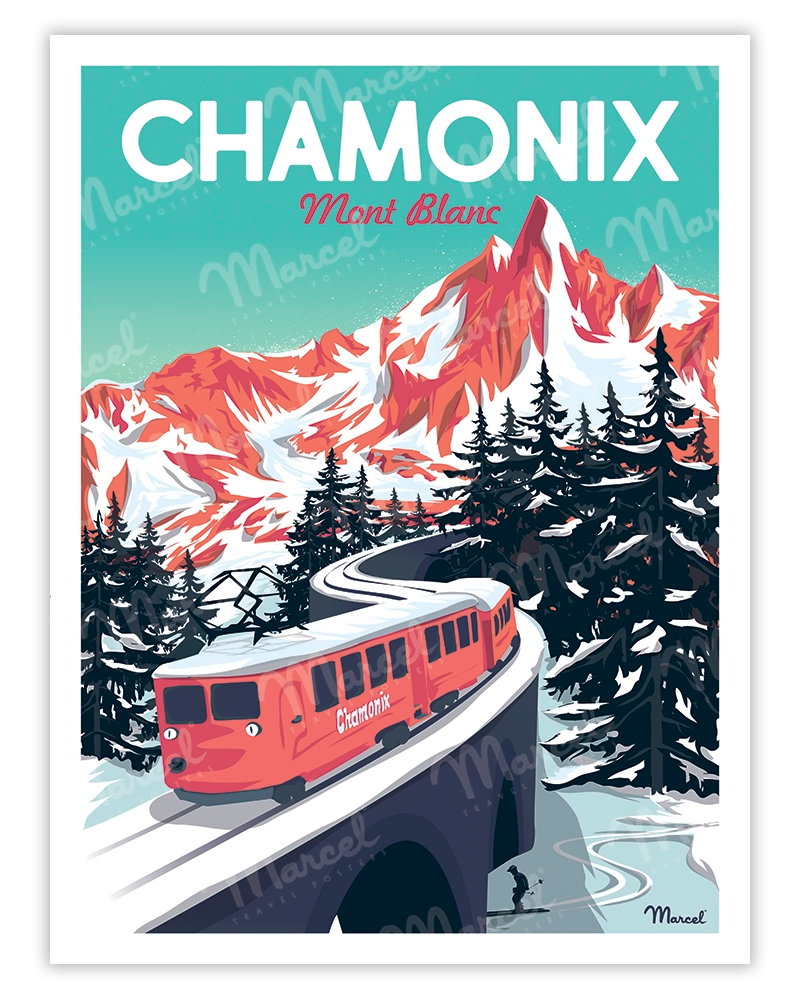 Rack railway, Montenvers viaduct and its arches, Mont Blanc massif, enjoy this unique atmosphere among the snow-covered fir trees of the Alps, all in a retro style that will blend perfectly into your interior decoration.