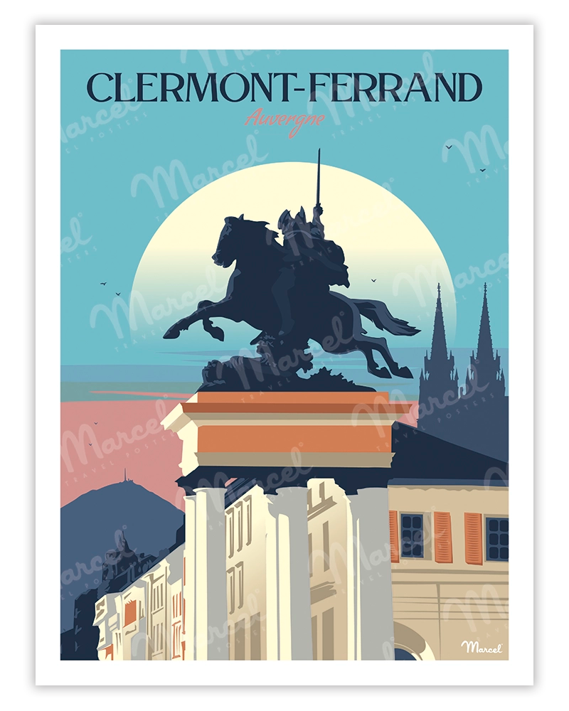 The Puy de Dôme, the Notre-Dame-de-l'Assomption Cathedral, the statue of Vercingetorix, discover this panorama during a stroll on the Place de Jaude, all in a retro style that will blend perfectly into your interior decoration.