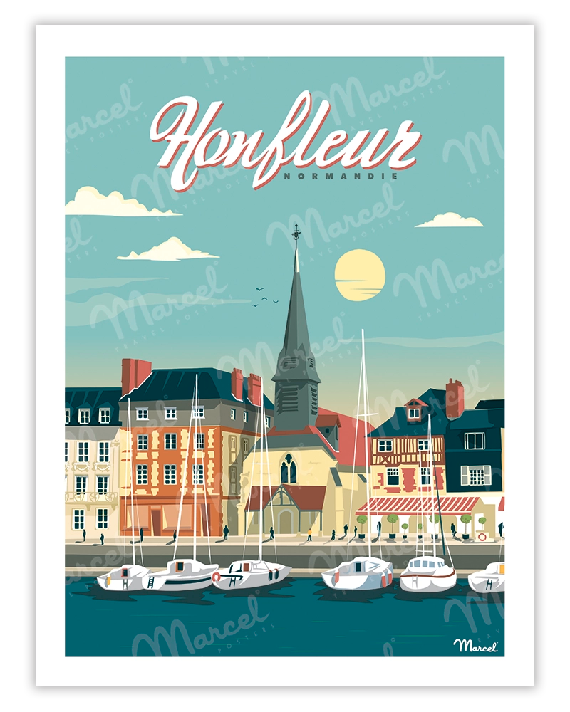 Sainte-Catherine Church, Honfleur hash browns as a local culinary specialty, authentic houses in the Vieux-Bassin, flower-lined streets, stroll through the charming streets of this authentic Calvados town, all in a retro style that will blend perfectly into your interior design.
