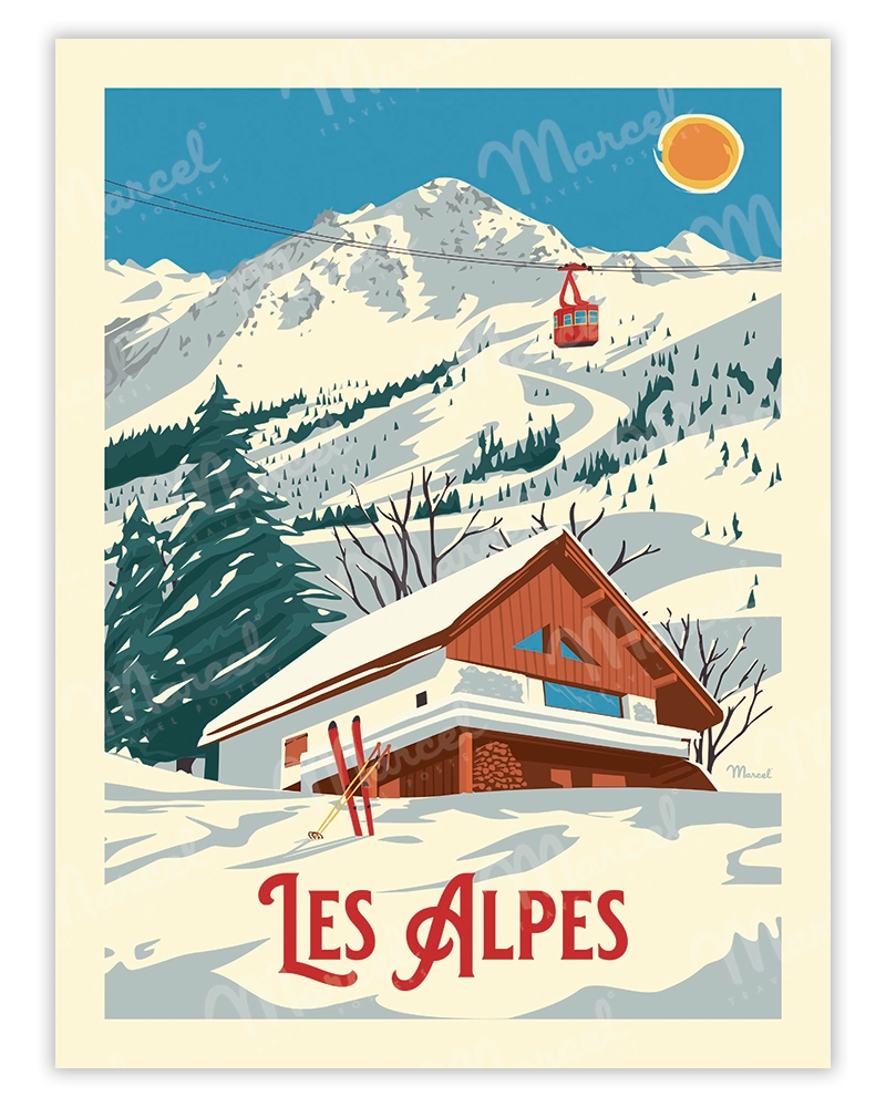 Charming resorts, snow-covered slopes, landscapes adorned with white gold, fir trees and wooden chalets, enjoy a winter sports holiday, all in a retro style that will blend perfectly with your interior decoration.