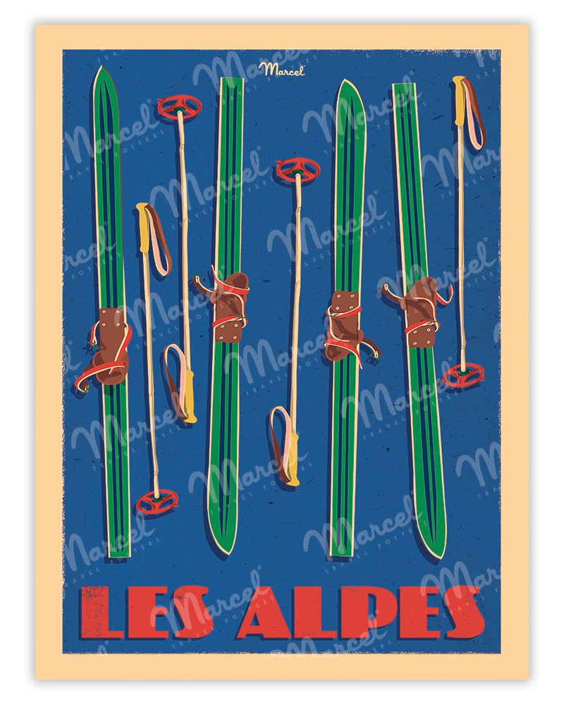 Marcel presents his original illustration LES ALPES “Skis Set”!