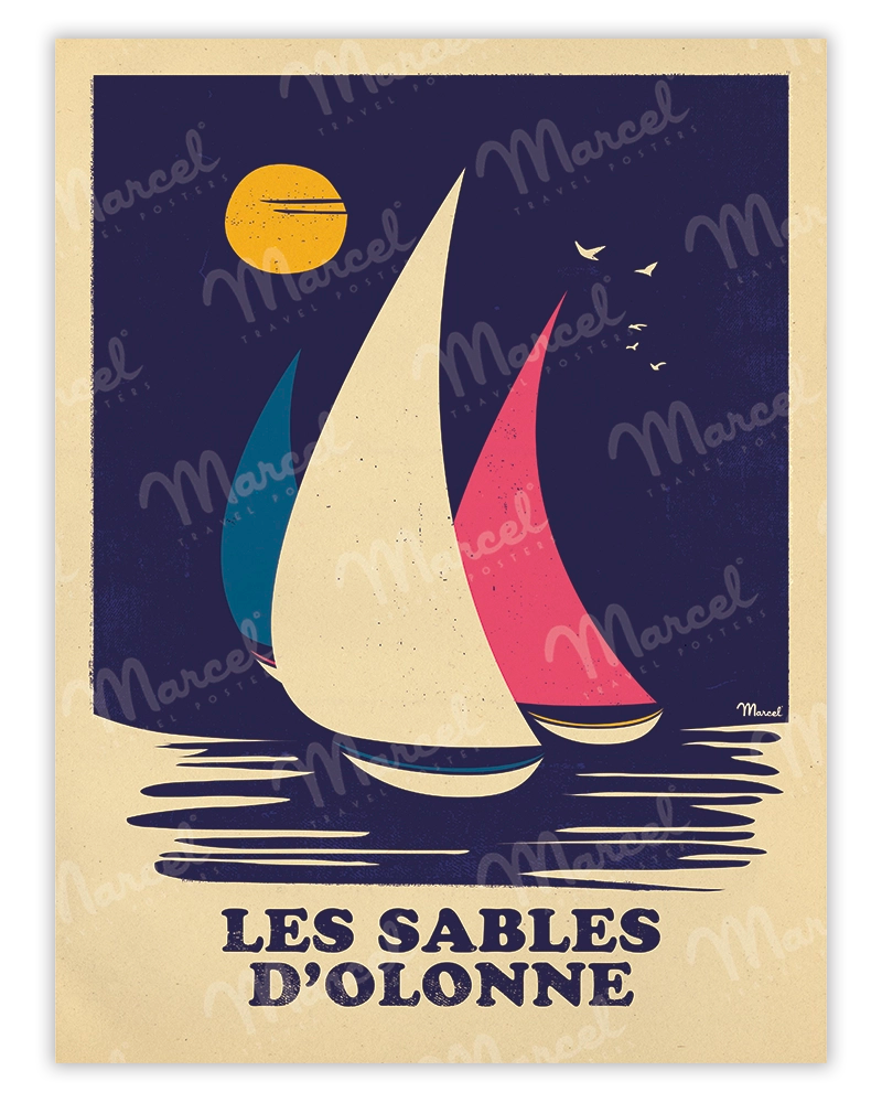 Marcel presents his original illustration LES SABLES D'OLONNE “Retro Sailing”!