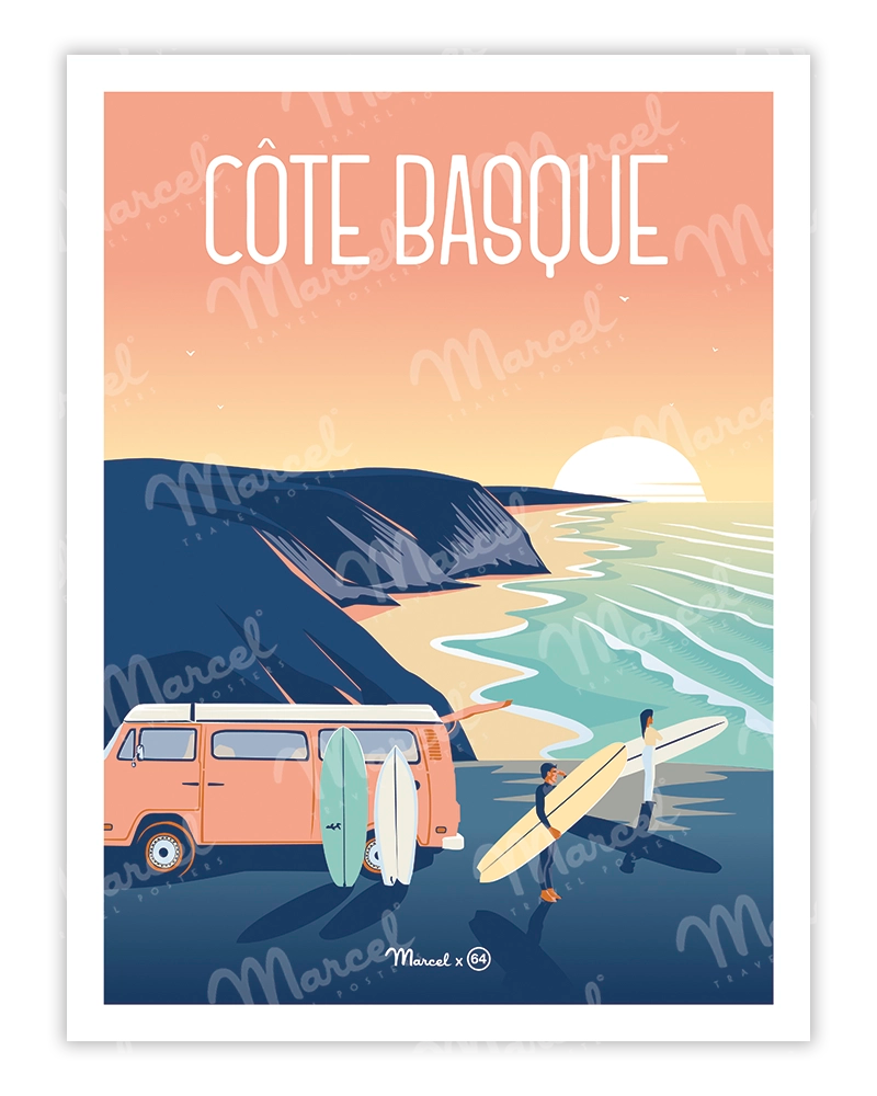 Immerse yourself in the unique world of the Basque Coast with this original creation by Marcel , produced in collaboration with La Marque 64. This authentic retro-style poster evokes the warm atmosphere and natural elegance of the southwest, bringing real character to your interior decoration.