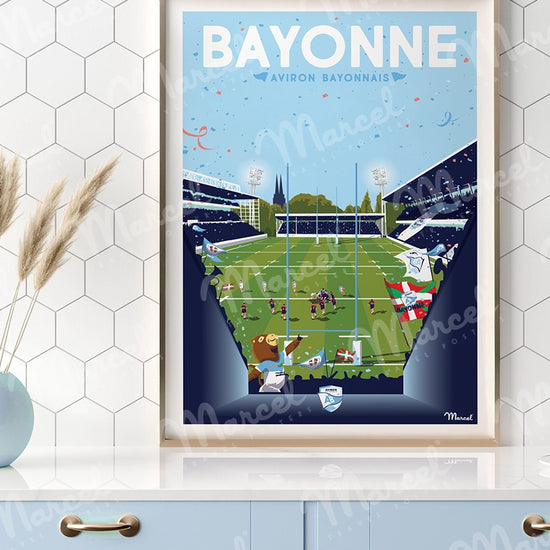 Ramenez l’affiche parfaite pour les fervents supporters de l'Aviron Bayonnais, le tout dans un style rétro qui sublimera votre décoration.