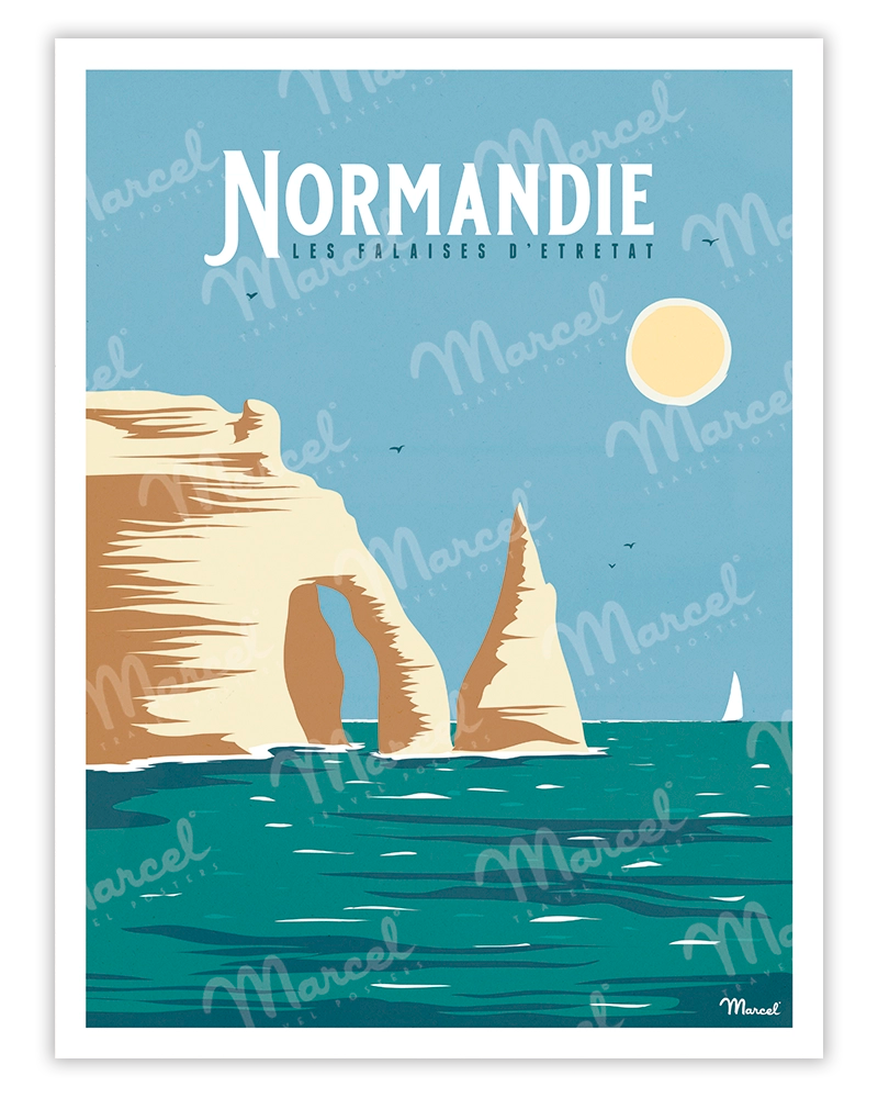 Porte d'Aval, la Manneporte, la Falaise d'Amont, enjoy the different views of the impressive cliffs of the Alabaster Coast, all in a retro style that will blend perfectly into your interior decoration.