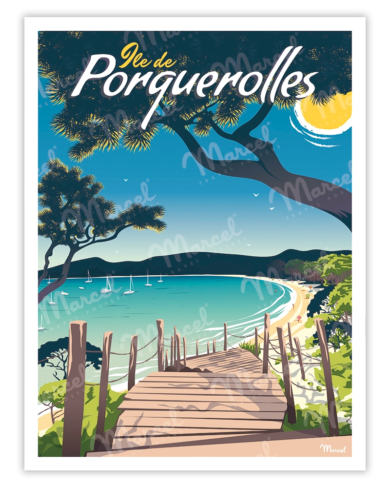 Marcel presents his original illustration PORQUEROLLES “Notre Dame Beach”!