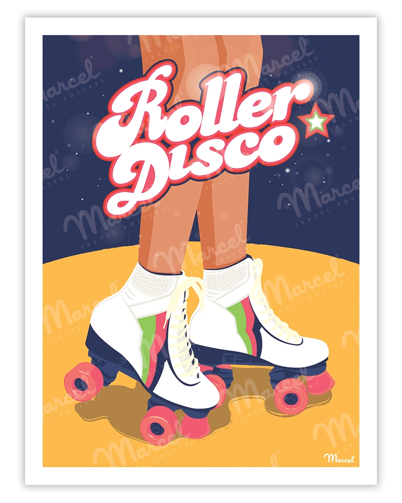 Roller skates, disco music, dancing, prepare your next dance and sports evening, all in a retro style that will blend perfectly with your interior decoration.