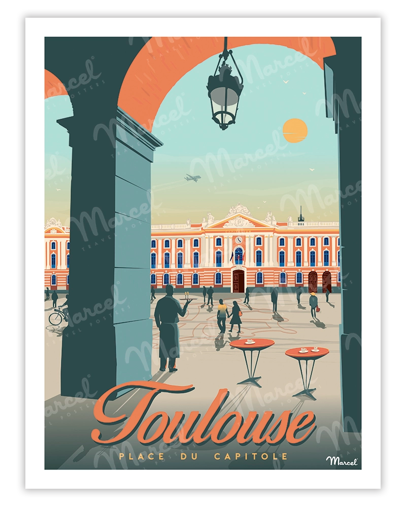 Central square with its Occitan cross, enjoy one of the terraces of bars and restaurants facing the Capitolium for a moment of relaxation in the heart of the city of Toulouse, all in a retro style that will blend perfectly into your interior decoration.