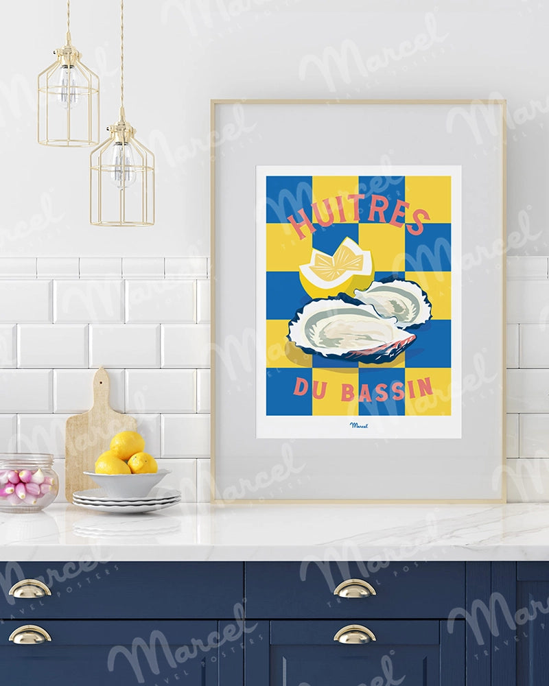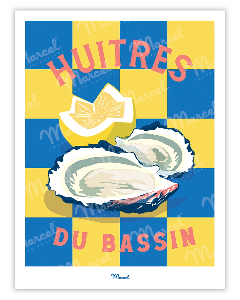 Bring a touch of freshness and color to your decor with the Travel Color ARCACHON "Huitres du Bassin" poster by Marcel.