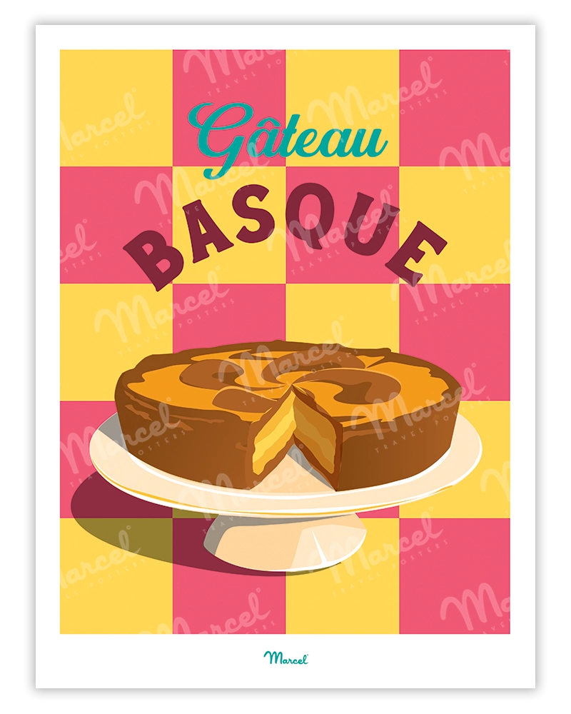 Printed in France on high-quality 350g/m² Matte Coated paper, the "Gâteau Basque" Travel Color poster immerses you in the sweet world of this legendary dessert. The warm tones and meticulous details of the illustration evoke the conviviality and authentic flavors of the Basque Country, a place where every bite of gâteau basque is a true explosion of tradition.