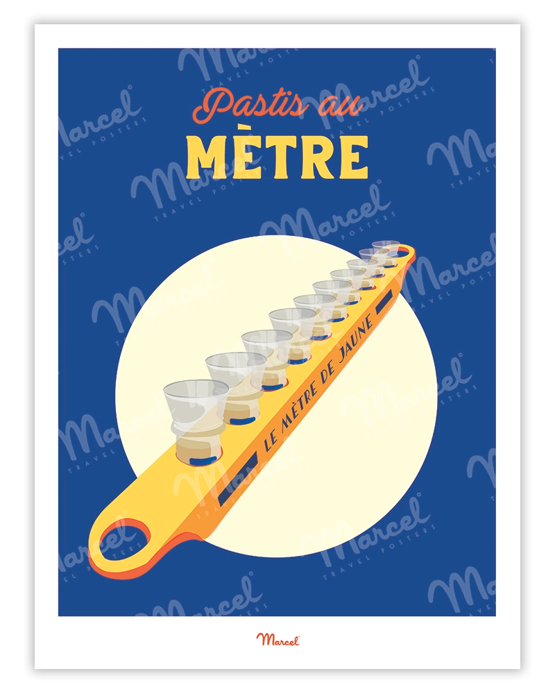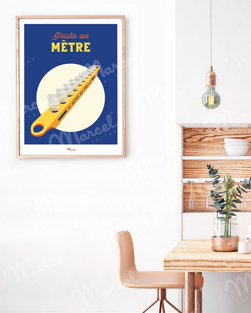 The Travel Color illustration "Le Mètre de Pastis" is printed in France on premium paper, guaranteeing an exceptional quality finish and great durability. It is available in various formats, allowing it to be perfectly adapted to your interior design, whether for a small space or a large wall. In addition, you have the option of choosing a custom frame, ideal for enhancing the poster and integrating it seamlessly into your decorative style.