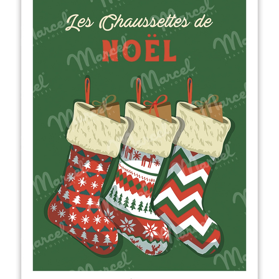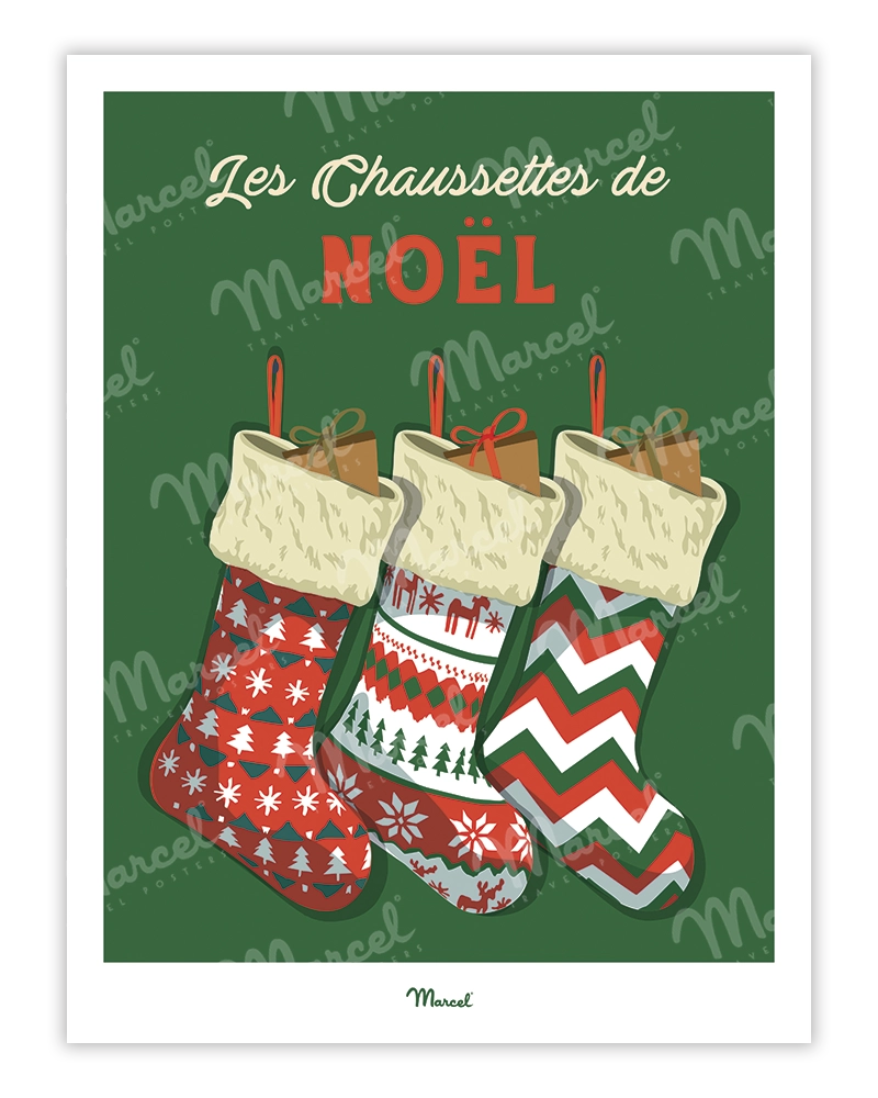 Marcel vous présente son illustration originale Travel Color "Les chaussettes de Noël".