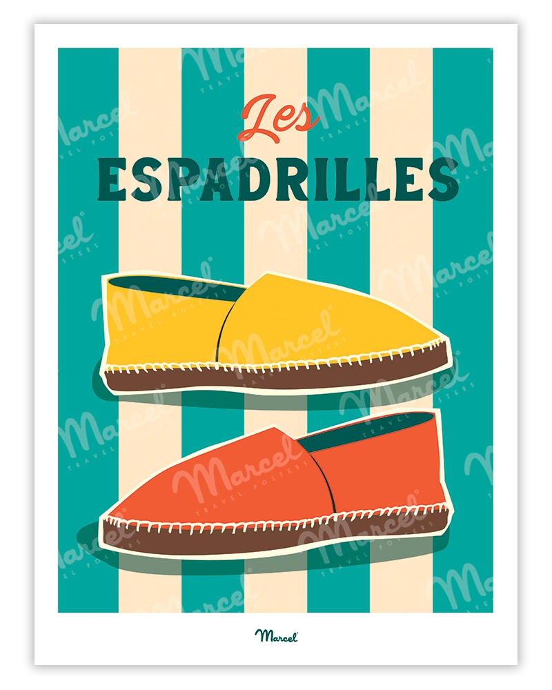 The "Les Espadrilles" poster is perfect for adding a touch of sunshine and cheer to your home. Whether in your living room, patio, or kitchen, this unique illustration will add a cheerful and colorful touch, typical of sunny days in the South.