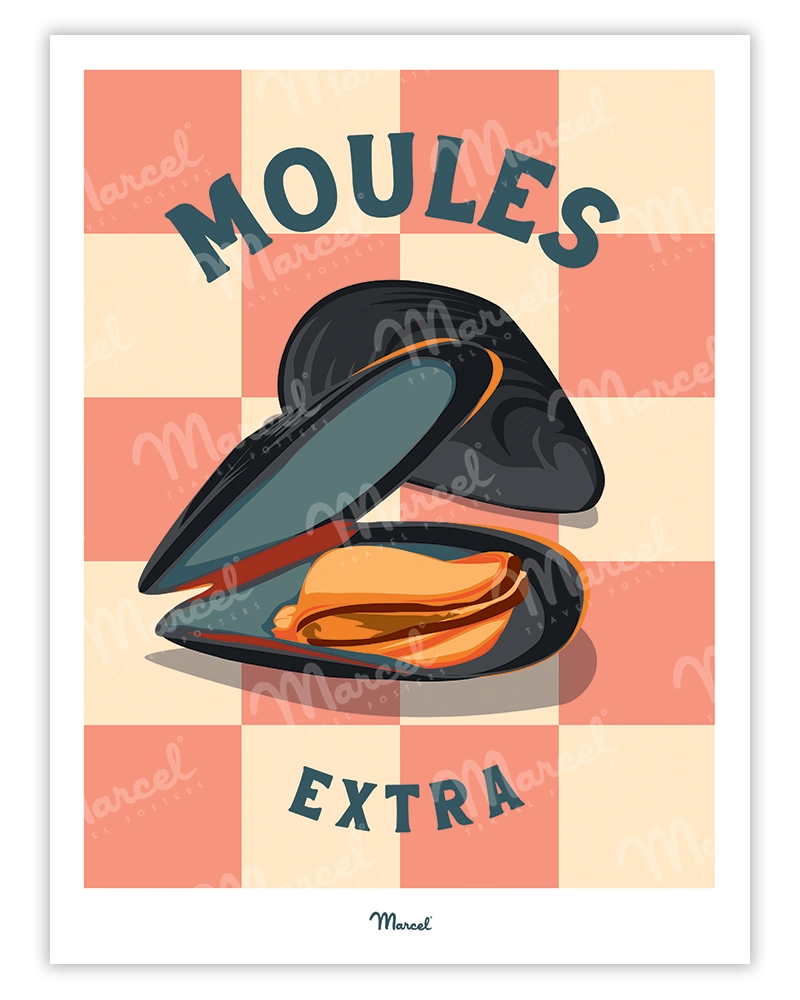 Printed in France on high-quality 350g/m² Matte Coated paper, the "Les Moules" poster evokes the atmosphere of seafood markets and seaside dining. The rich colors and meticulous details of the illustration immerse you in the world of marine gastronomy, while celebrating this popular specialty.