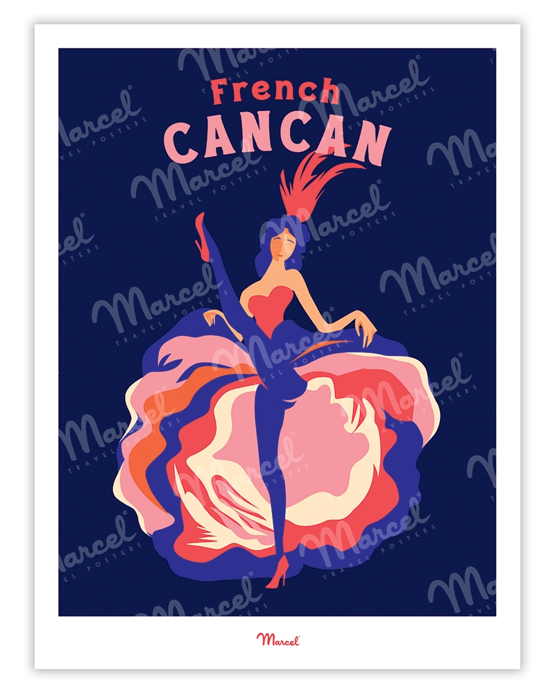 The Travel Color PARIS "French Cancan" poster is ideal for brightening up your living room, bedroom, or any other space. Perfect for those who love the excitement of Paris, this vibrant illustration will add a festive and elegant touch to your decor. Whether you're a fan of Parisian culture or looking to add a little cheer to your home, this poster is the perfect addition.