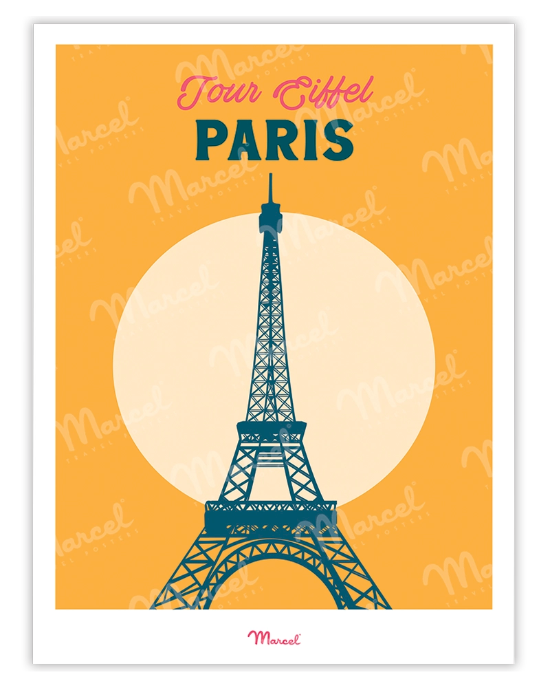 Printed in France on high-quality 350gsm Matte Coated paper, the "Eiffel Tower" poster combines the monument's elegance with a bold, contemporary design. The bright yellow background highlights the Eiffel Tower's imposing silhouette, creating a dynamic and charming illustration. Every detail of the illustration embodies the beauty and iconic nature of this architectural masterpiece.