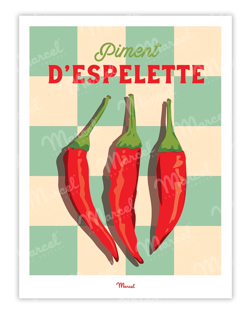 Printed in France on high-quality 350g/m² Matte Coated paper, the "Piments d'Espelette" poster immerses you in the warm world of this typical Southwestern product. The vibrant colors and meticulous details of the illustration evoke the Basque markets, where the Espelette pepper is celebrated for its unique taste and essential role in local cuisine.