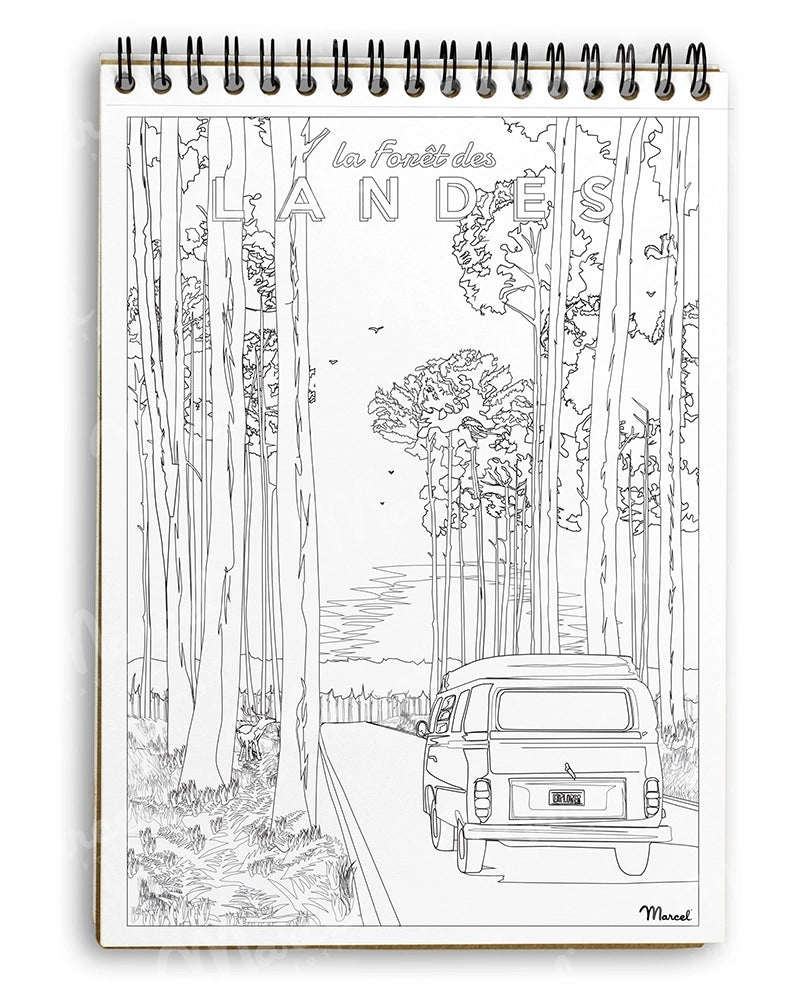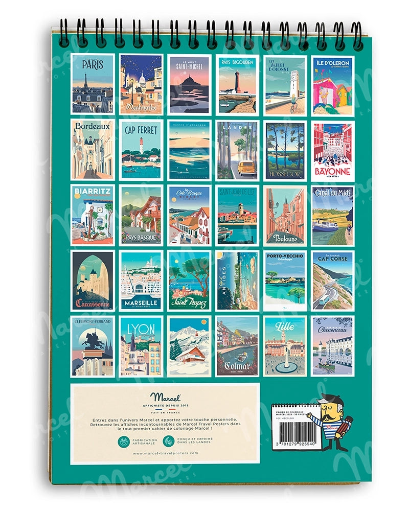 Coloring illustrations: PARIS "The Roofs", MONTMARTRE "Place du Tertre", Mont Saint-Michel, BIGOUDEN COUNTRY, Les Sables d'Olonne, OLERON Island, BORDEAUX "Rue Saint James", CAP FERRET "The Lighthouse", ARCACHON BASIN "Banc d'Arguin", LANDES Forest, HOSSEGOR "Super Hossegor", BAYONNE in celebration, BIARRITZ "Fishermen's Port", BASQUE COUNTRY "Basque Village", SAINT-JEAN-DE-LUZ "The Port", TOULOUSE "Rue du Taur", Canal du Midi, CARCASSONNE "The Medieval City", MARSEILLE "The Old Port", SAINT-TROPEZ, Cap d'ANTBES, PORTO-VECCHIO "Palombaggia", CAP CORSE, CLERMONT-FERRAND "Auvergne", LYON "Old Lyon", The Chalet, COLMAR, LILLE "The Grand'Place", CHENONCEAU Castle
