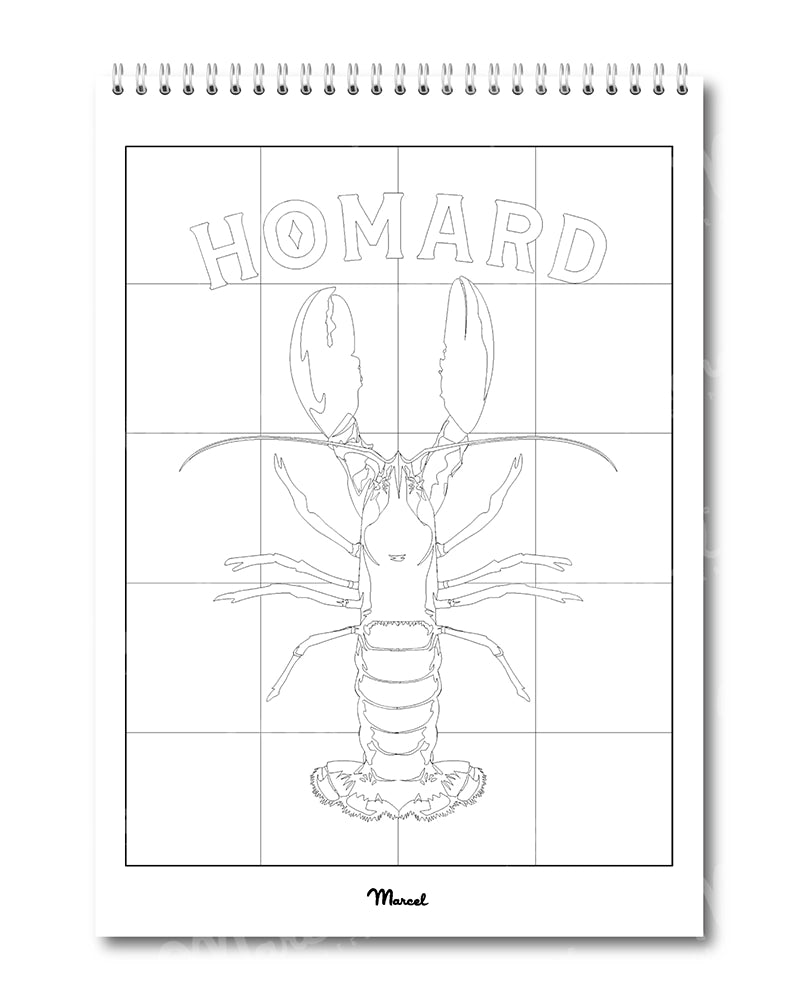 Reliure spirale métallique blanche, papier offset 190gr et prédécoupe de la page pour chaque dessin