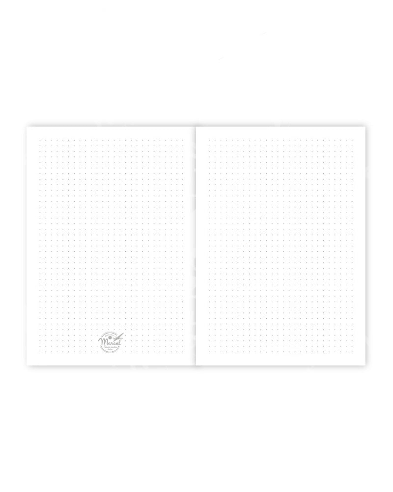 We offer you this 48-page dotted notebook, in A5 format, with a soft cover and matte finish.