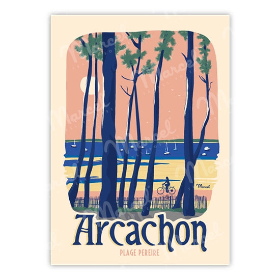 Original Illustration Postcard ARCACHON "Pereire Beach"
