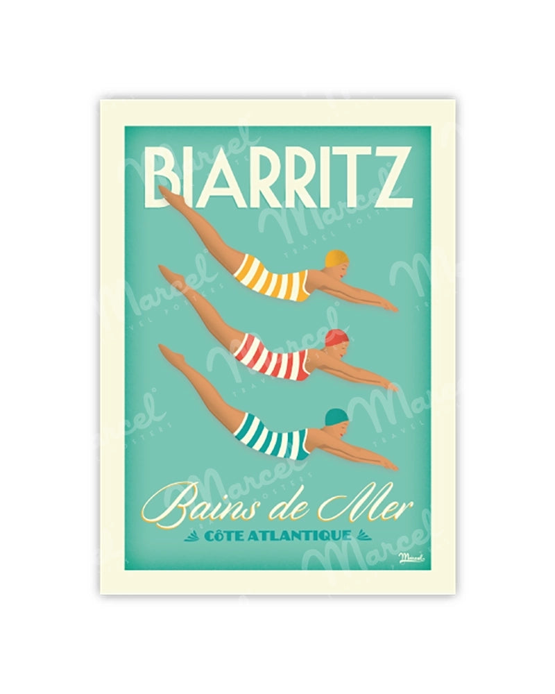 Original Illustration Postcard BIARRITZ "Sea Baths"