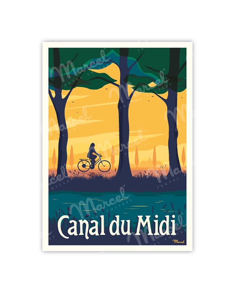 Original Illustration Postcard CANAL DU MIDI "Bicycle"
