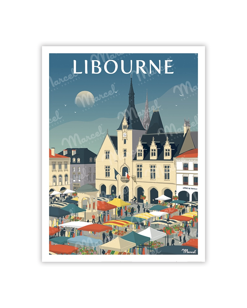 Marcel vous présente son illustration originale LIBOURNE "Place du Marché".