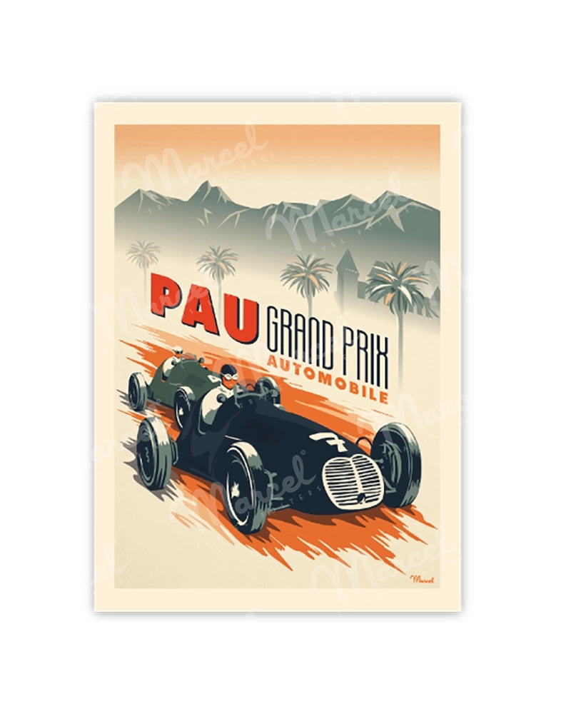Original Illustration Postcard Marcel PAU "Grand Prix Automobile"
