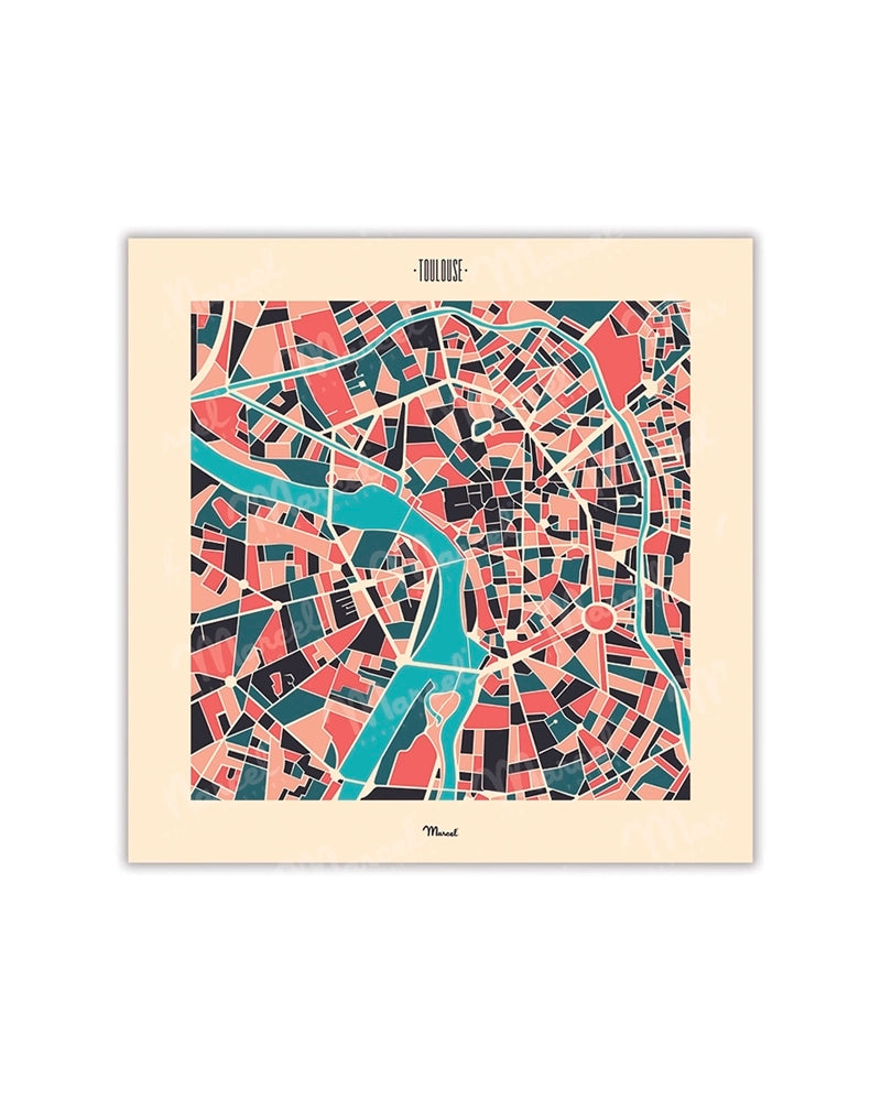 Postcard Illustration TOULOUSE “Plan Mozaic”