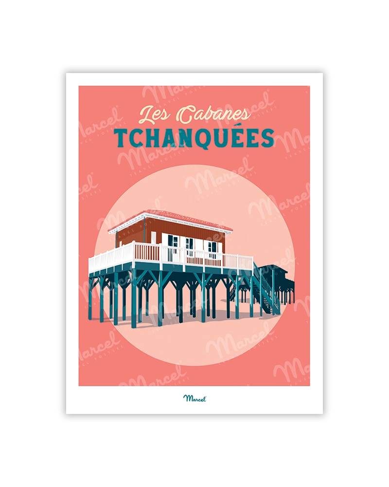 Marcel presents his original Travel Color illustration ARCACHON "les Cabanes Tchanquées" .