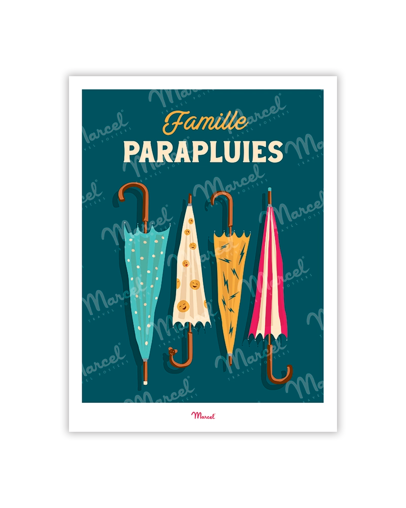 Marcel presents his original Travel Color illustration "Umbrella Family".