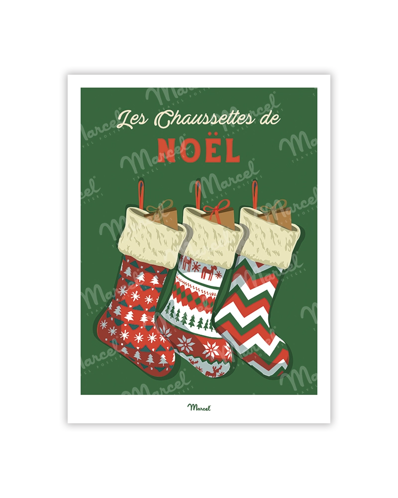 Marcel vous présente son illustration originale Travel Color "Les chaussettes de Noël".