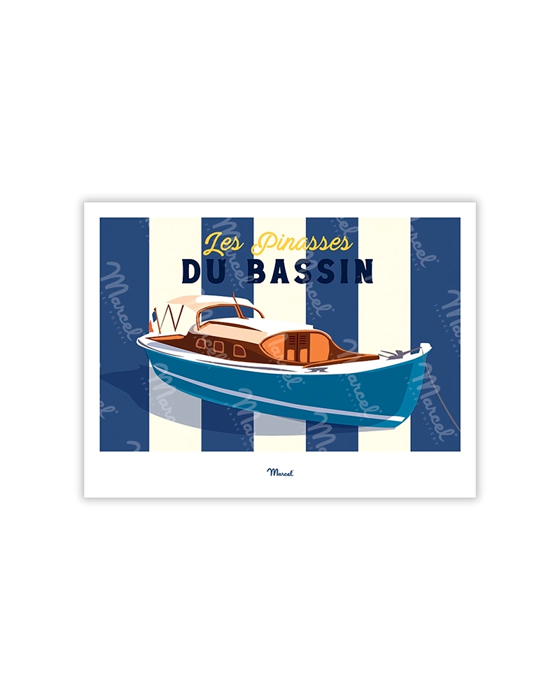 Marcel presents his original Travel Color illustration "Les Pinasses" blue of the Basin" .
