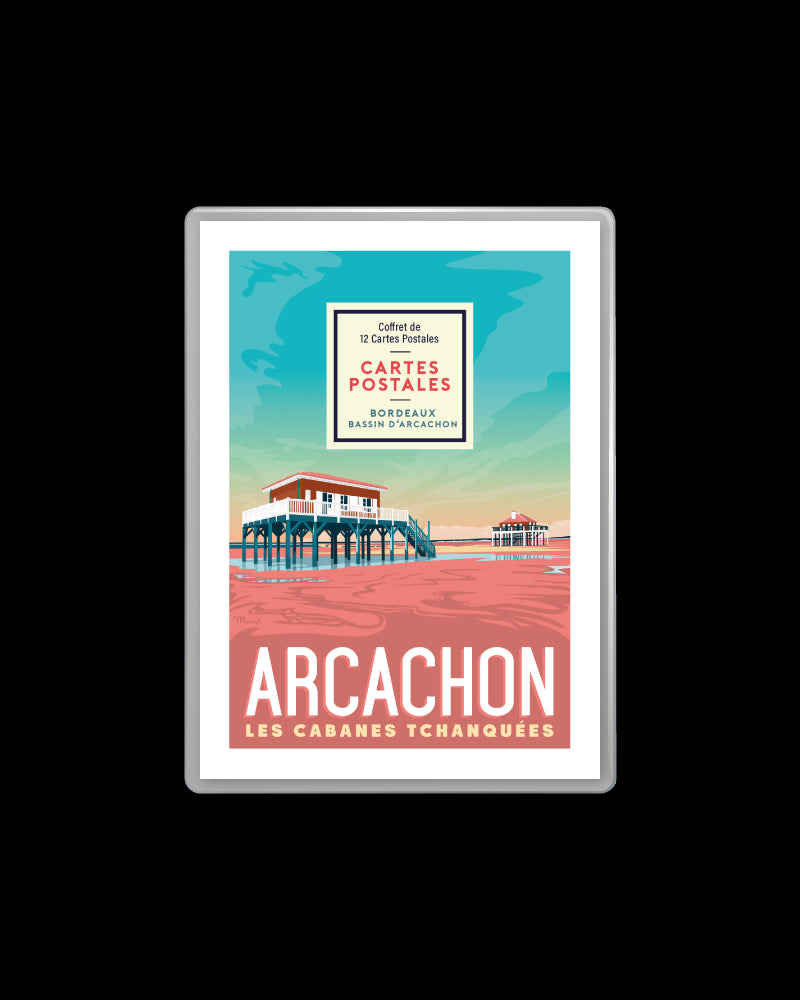A6 POSTCARD BOX - Assortment of 12 Postcards in a metal box BORDEAUX / ARCACHON BASIN composed of the following 12 postcards: CAP FERRET LE PHARE, ARCACHON CABANES TCHANQUEES, ARCACHON JETEE THIERS, DUNE DU PILAT, VAN SUNSET ATLANTIC COAST, SEA BATHS ATLANTIC COAST, CAP FERRET TYPOGRAPHY, CAP FERRET LE MIMBEAU, CAP FERRET OYSTER SHACK, ARCACHON BASIN BANC D'ARGUIN, BORDEAUX WINES, BORDEAUX BY NIGHT.