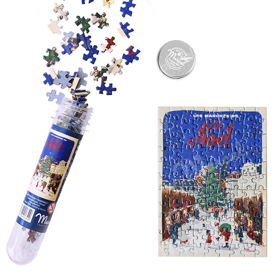 Evadez-vous dans les plus beaux marchés de Noël avec ce puzzle 99 pièces "Marchés de Noël", pelliculage mat, et offrez-vous la possibilité de l’encadrer une fois terminé avec son format A6 !