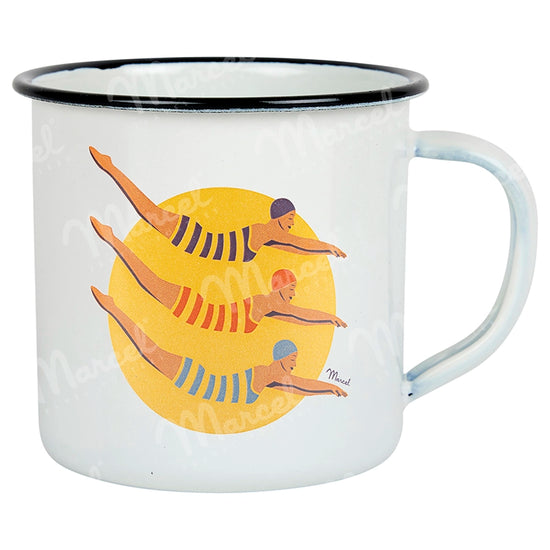 Treat yourself to a swim with the retro enameled steel “Bain de Mer” mug.