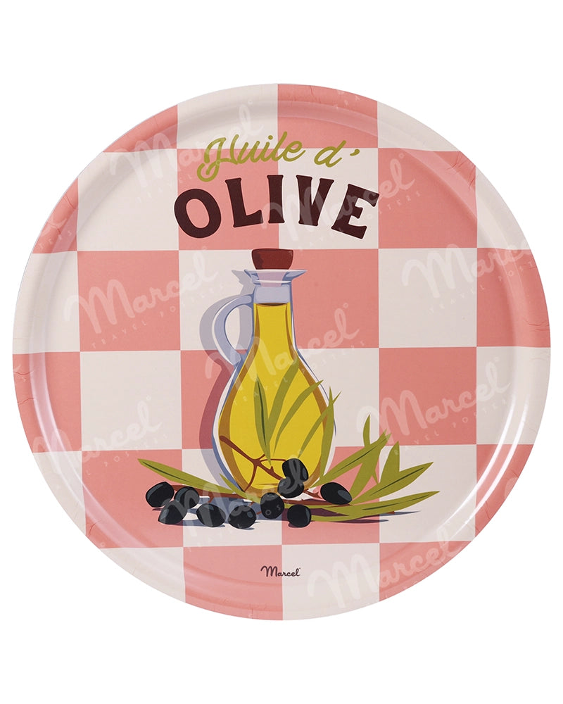Marcel presents his TRAVEL COLOR "Olive Oil" round kitchen tray.