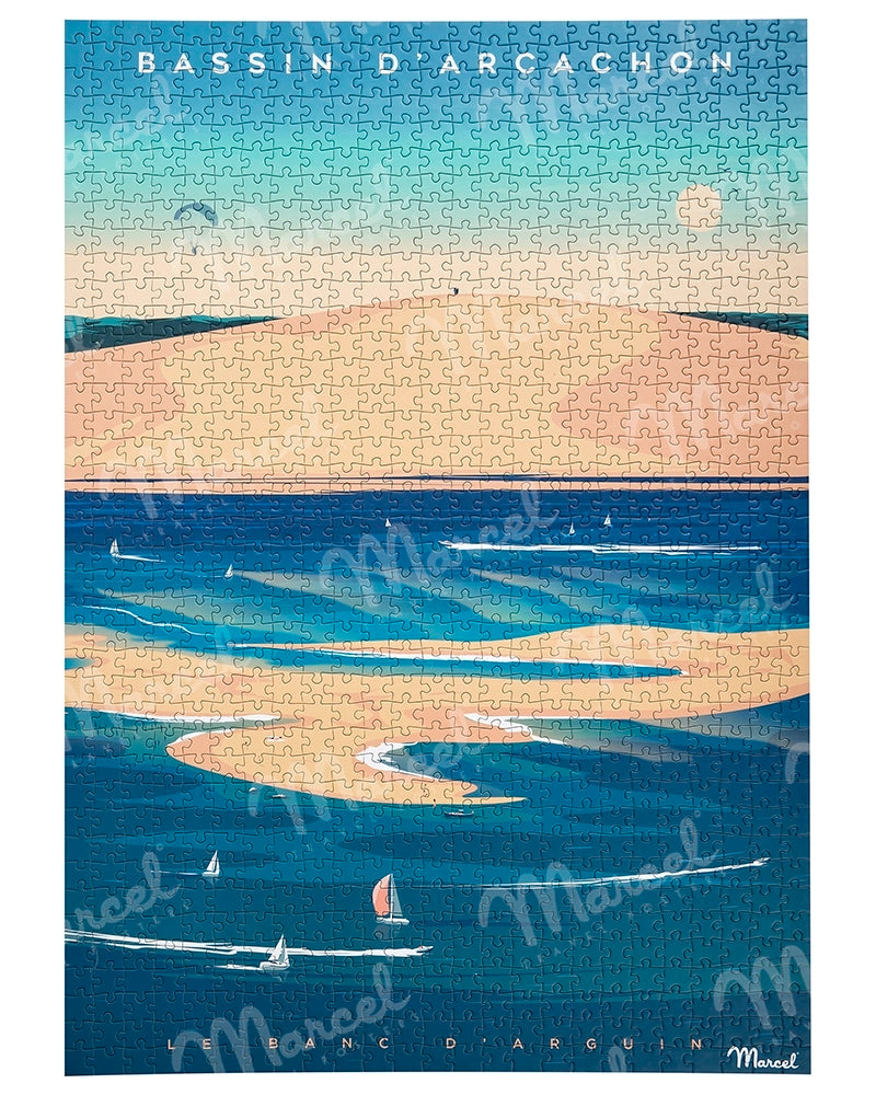 Escape between stretches of sand in the middle of the ocean and sea currents with this 1000-piece puzzle BASSIN D'ARCACHON "Banc d'Arguin" , matte lamination, and give yourself the opportunity to frame it once you have finished it!