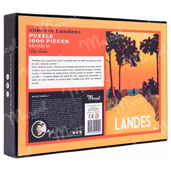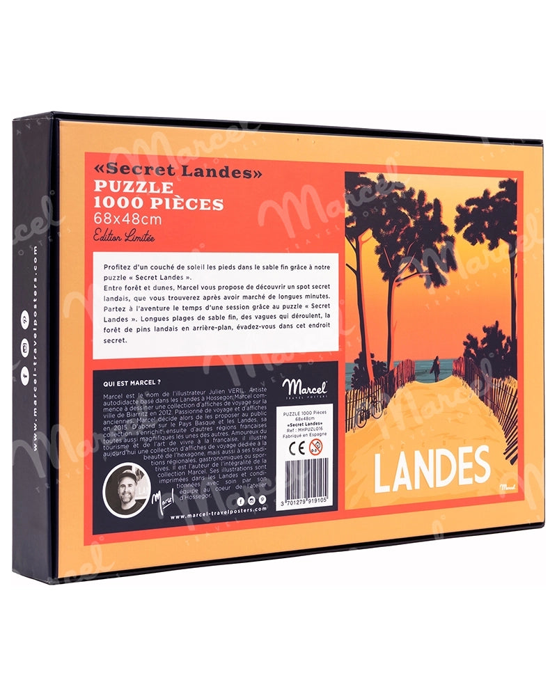 Stroll along the warm sand of the long Landes beaches or go surfing the waves of your favorite spot with this 1000-piece “Secret Landes” puzzle , matte lamination, and treat yourself to the possibility of framing it once you have finished it!