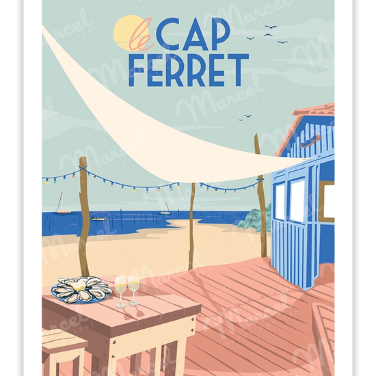 Marcel vous présente son illustration originale CAP FERRET « Cabane à Huîtres » !