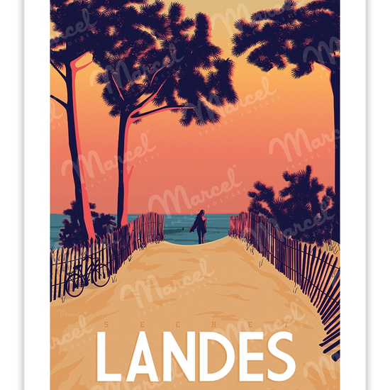 Longues plages de sable fin, des vagues qui déroulent, la forêt de pins landais en arrière-plan, évadez-vous dans cet endroit secret, le tout dans un style rétro qui se mariera parfaitement dans votre décoration d’intérieur.