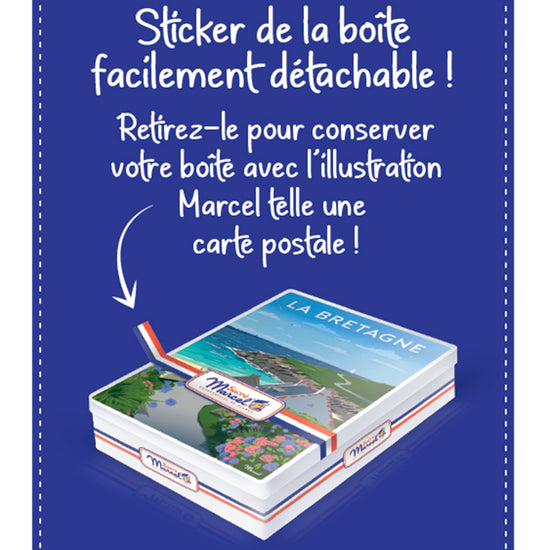 La boîte s’inspire de l’affiche originale LA BRETAGNE, une illustration vintage riche en symboles culturels et paysages typiques. Marcel vous emmène au cœur d’une région authentique bordée par la Manche, l’Atlantique et le Golfe de Gascogne, ponctuée de villages charmants, de sites naturels grandioses, et d’une identité forte et attachante. Un voyage illustré au plus près de l’âme bretonne.