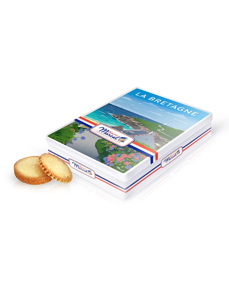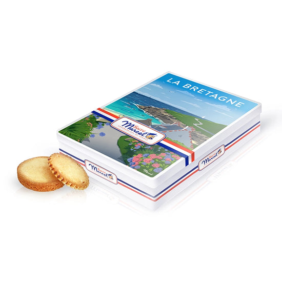 À l’intérieur, retrouvez les incontournables galettes bretonnes pur beurre, au goût riche, légèrement salé, et à la texture fondante. Fabriquées selon la tradition artisanale bretonne, elles évoquent à chaque bouchée les marchés locaux, les goûters sur les plages de galets, ou les dimanches pluvieux au coin du feu. Un morceau de Bretagne à croquer, à savourer ou à partager.